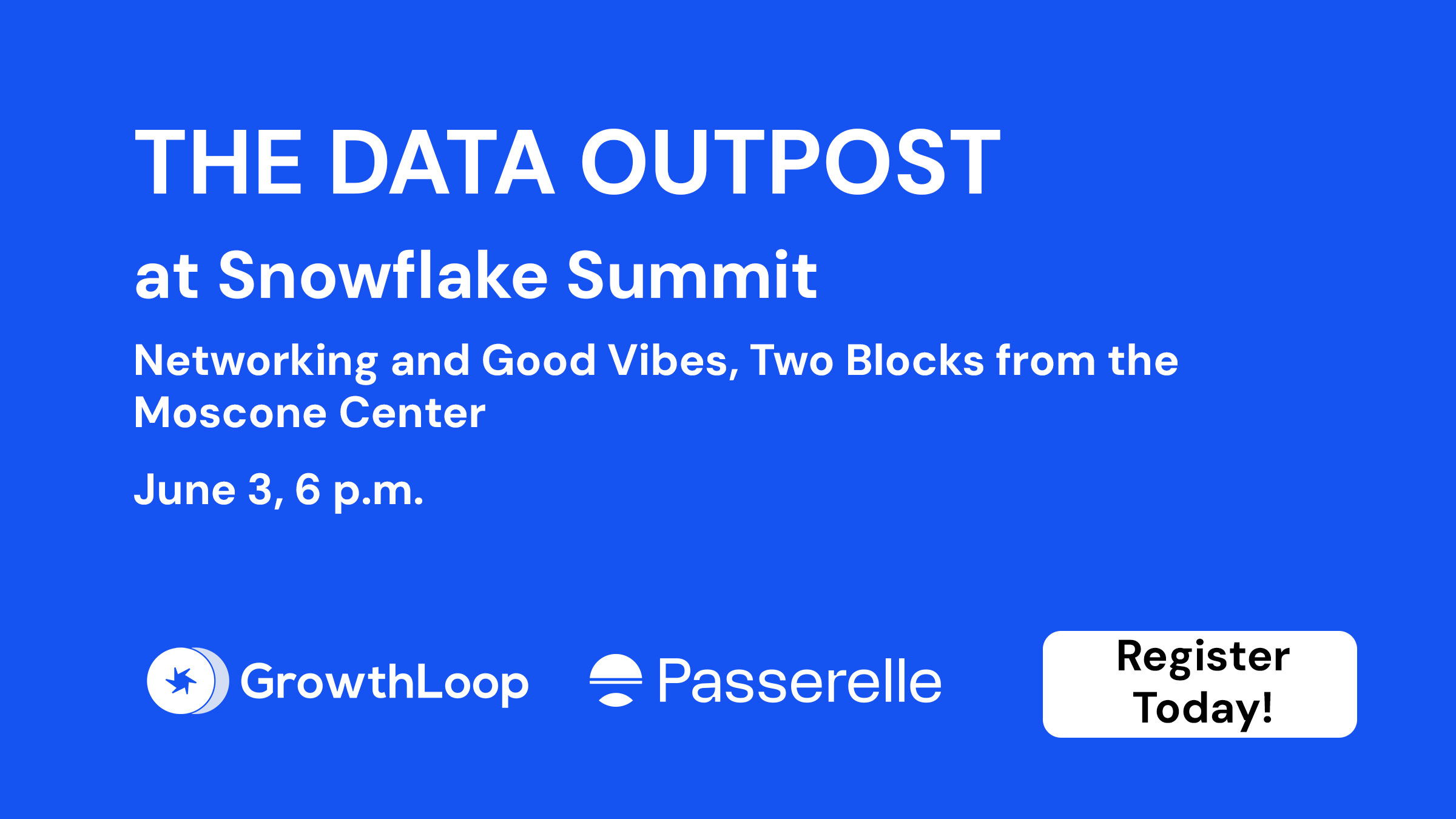 After a day of networking and learning at Snowflake Summit 2025, wind down with GrowthLoop and Passerelle at our signature happy hour—where data pros, innovators, and industry leaders come together for an unforgettable evening. Learn more.